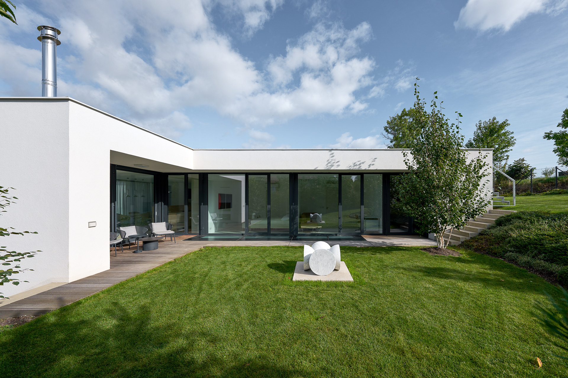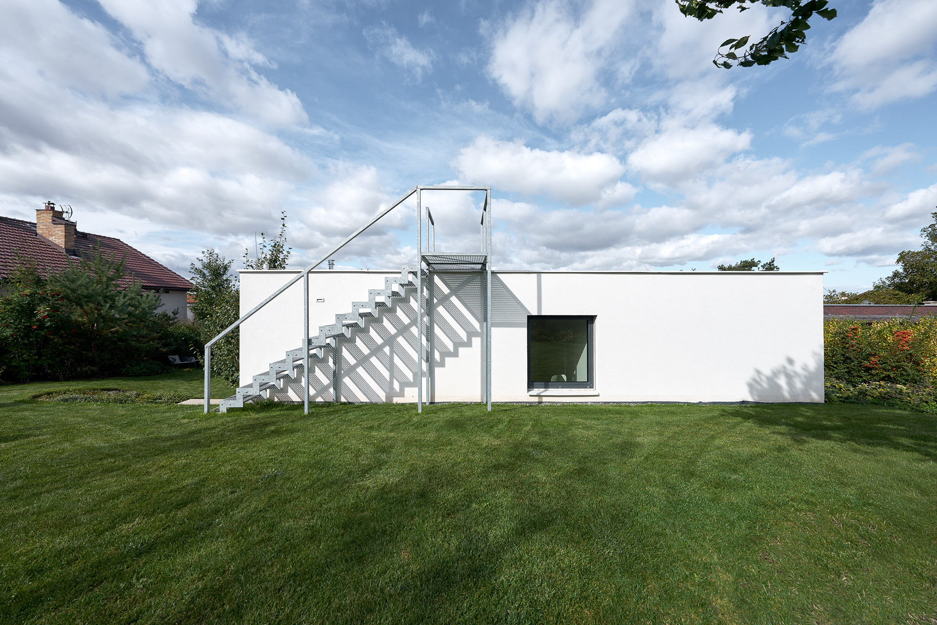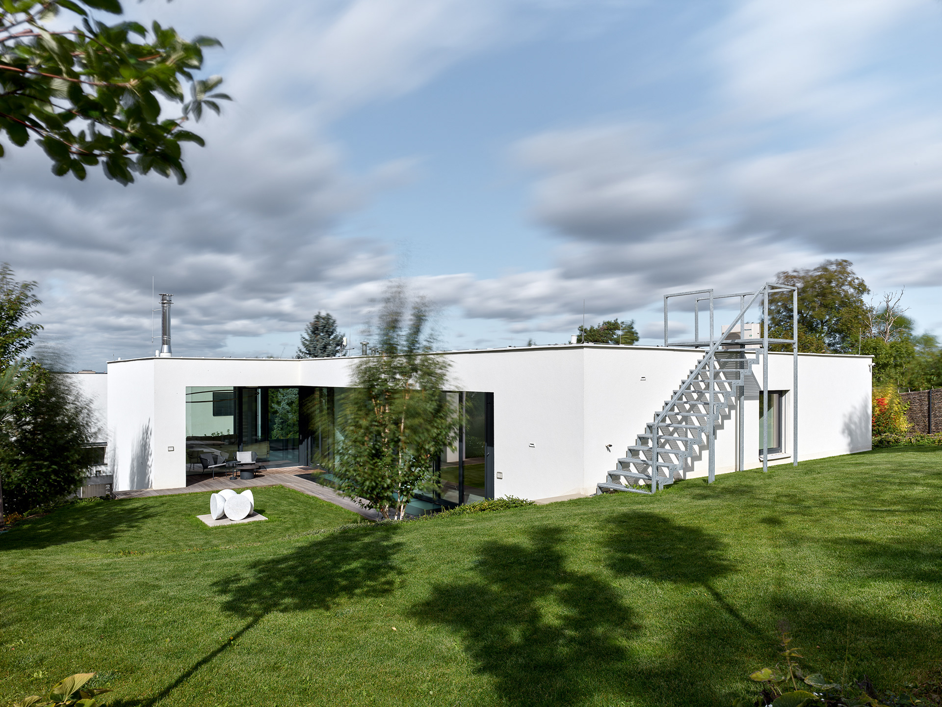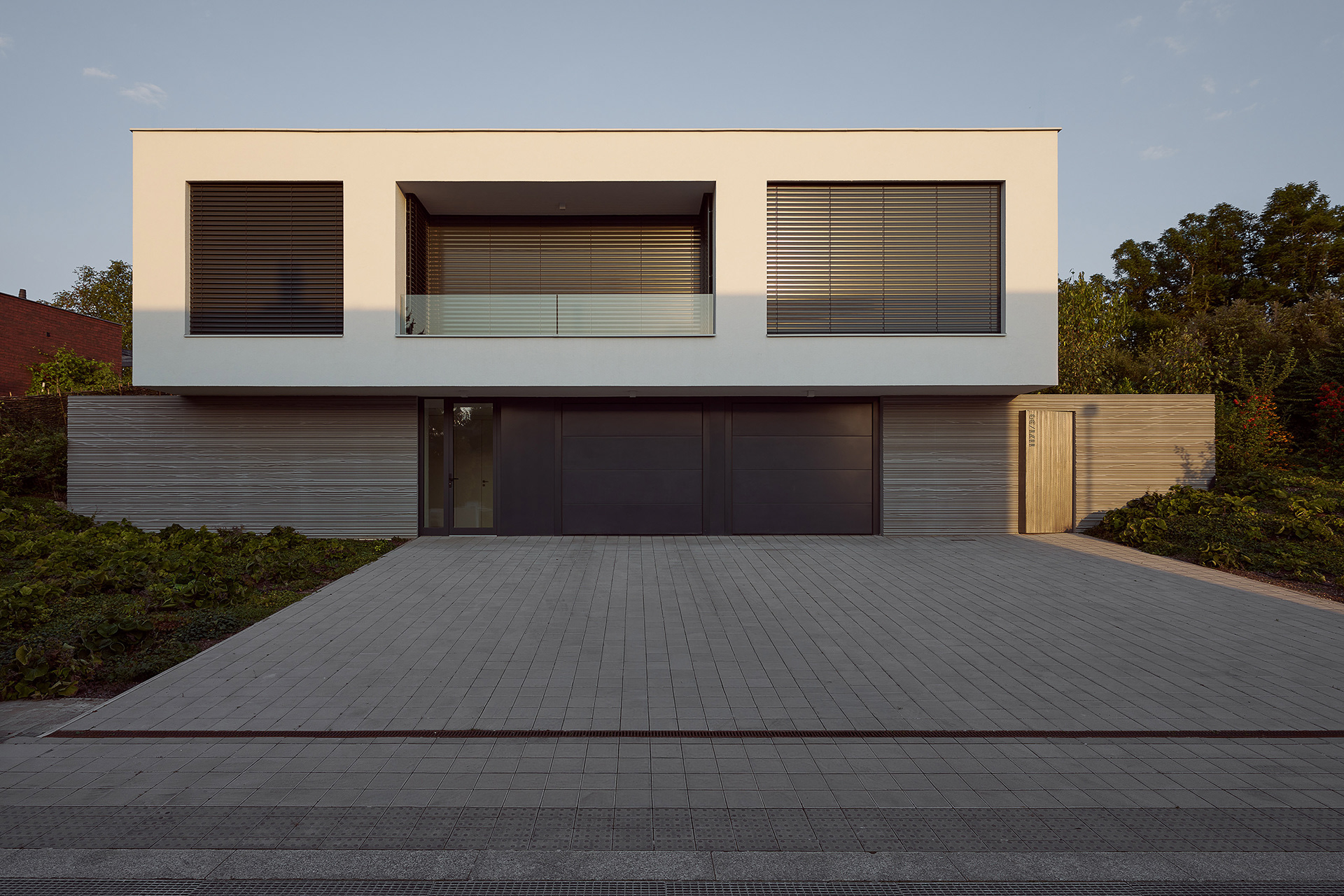 A few frames from an architectural realization in the Moravian Karst. A weekend house with a sauna, wrapped in silence and blue hour light.